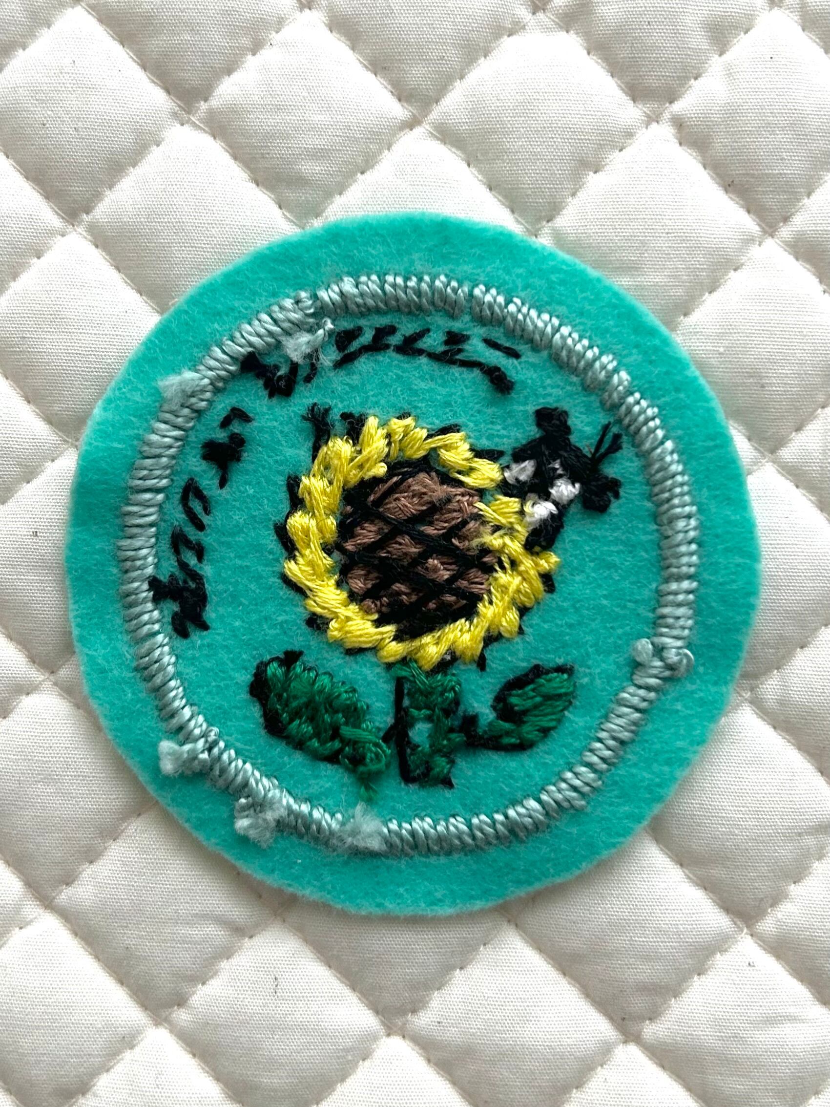 手縫いで制作した1点もののワッペンです。 繊細な作りのため手洗いのみ、洗濯乾燥機は使用不可になります。 Size D70mm